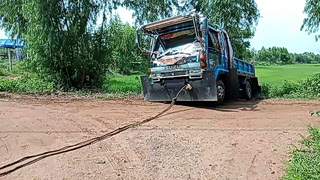 货车用自带的绞盘脱困,真是好办法
