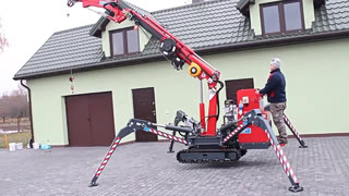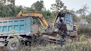 拉挖机进工地,师傅上车动作操控不好,老板在旁差点急了
