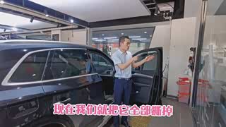 三年的奥迪Q5L撕掉劣质玻璃膜更换顶级隔热膜