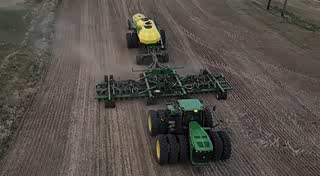 美国农场春季播种航拍 约翰迪尔9630拖拉机配套免耕播种机