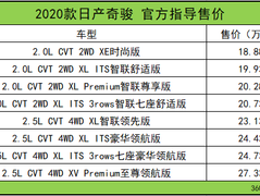 2020款日产奇骏上市 售18.88-27.33万元