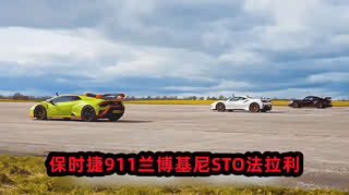 保时捷911,兰博基尼STO,法拉利三辆车比直线加速
