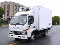 江淮纯电动面包冷藏车 5.3方纯电动冷藏车 可进地下室 车辆公告型号名称 HFC5030XLCEV13W型纯电动冷藏车 冷藏箱容积(m^3) 5.3 整车外尺寸(mm) :5460 x 1860 x 2190,2260, 2300可进地下室. 货箱内尺寸(mm) : 2730x 1540x1260, 底盘配置: 轴距3380, 轮胎195/75R16LT12PR, 电池: 宁德时代,磷酸铁锂(8年40万公里质保) 电池容量(kWh): 53.58 电机额定/峰值功率(kW): 35/77(后驱) 230Nm输出扭矩,满载最高车速≥100km/h 充电: 快充≤0.8h 20%~80%/慢充6.6kW 可调节制动能量回收 悬挂系统 前麦弗逊/后钢板弹簧(3片式渐变钢板簧) 优势配置: 前贯穿灯,日行灯,电加热后视镜,冷暖空调,主副驾遮阳板,蓝牙音响,电动助力转向,主副驾一键升降窗,电子手刹,旋钮换挡,航空减震座椅,低速提示音,前盘后鼓,ABS+EBD,倒车影像,7寸全液晶数字仪表,10.1寸中控屏,快慢充,铝合金花纹地板,远程车控(升降窗、解闭锁、寻车、开关空调),