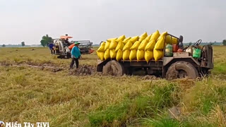 村民改装农用卡车,这次拉的太多了,结果陷在地里动不了