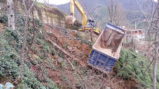 从山上运输木材,山里的路真难走,太考验司机的驾驶技术了