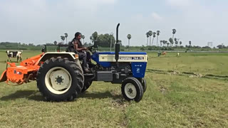 村里女孩第一次驾驶拖拉机,操作不太熟练,驾驶起来丝毫不逊色