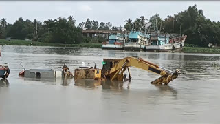 船舶打捞,挖掘机这波操作我是服了,真敬业!