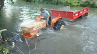 大半个车身都被淹没,结果还能开出来,拖拉机性能太好了