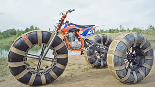 竞技摩托改装的三轮水陆两用摩托,水里开效果如何?试下见分晓