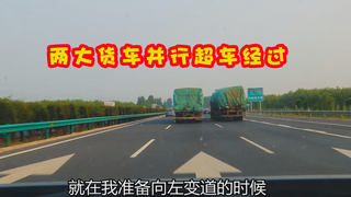 高速公路汇入口,两大货车并行超车经过,黑色轿车这样超车可以吗