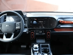 哈弗大狗,造型十分宽大,上方贯穿式尾灯带有熏黑的LED灯具填充,下方尾杠十分扎实,相互搭配起来不仅凸显出时尚感,而且也透露出一副不好惹的气息。值得注意的是,“哈弗大狗”四个字也被安排在左下方,彰显了身份。造型个性的中控屏,立体化的副驾驶前面板吗,带有橙色点缀的竖状空调出风口,精致的旋钮换挡,饱满的方向盘,以及大面积的黑色烤漆饰板和木纹饰条。