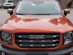 哈弗大狗,前脸部分采用一款大尺寸进气格栅,中间带有三根镂空式的镀铬饰条,将HAVAL字样配置其中,只一眼就让人忘不了。两侧大灯造型圆润大气,搭配LED灯带设计,点亮后让新车显得炯炯有神。侧面线条十分硬朗,橙色涂装显得活力四射。车顶的银色行李架野性十足,车窗周边带有银色镀铬饰条勾勒显得很有气质。侧裙下方带有上车踏板,俨然一副越野车的架势。