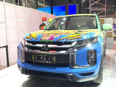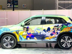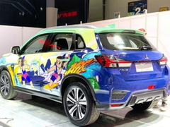 劲炫ASX,侧面整体也是由全新的动漫风格涂装,非常的年轻个性,并且因为车窗的整体都由熏黑的设计,显得后排的车窗面积很大,显得更有立体感,下方的轮眉与车裙都采用了熏黑的方蹭饰板设计,并且搭配五幅式的旋风轮毂,运动感非常的强。尾部就没有了花哨的动漫设计,而是由两种纯色来拼接来设计,顶部突出的扰流板采用了青色的设计,下方的后备箱与保险杠则是由深蓝色,看起来时尚的气息十分明显,而且得益于倾斜角度较大的尾部车窗,使得尾部看起来非常的饱满,并且多条贯穿式的线条也增加了不错的层次感,保险杠处有着熏黑的饰板镶嵌,下方也有着呼应车头的黑色挡板设计。