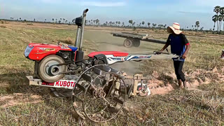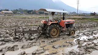 久保田拖拉机牵引犁具犁田,这耕田的速度就是快!