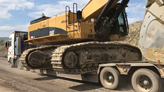卡特390D大型挖掘机实拍,上板车简单粗暴!