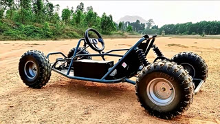 卡丁车换上大齿轮的轮胎,跑起来太给力了,真是会玩