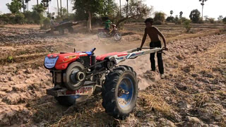 久保田拖拉机没油了,加点油继续犁地