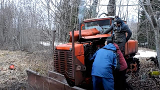 启动这个老旧拖拉机是个力气活,双手转动圆柄,没点力气启动不了