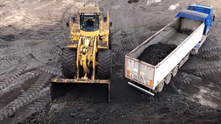 超大型挖掘机两铲斗满卡车,太省时省力了!