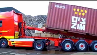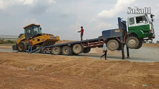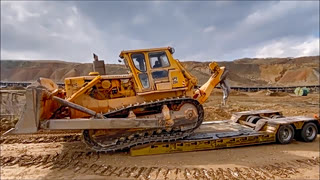 操作重型推土机上拖车,难度大不大,看拖车上扬就知道!