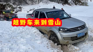 成佛坡不让玩,越野车来到雪山,一路积雪太厚,车队艰难前行