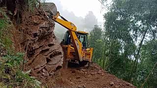 挖掘机要在荒山上开一条新路,山上的土太硬,有点挖不动