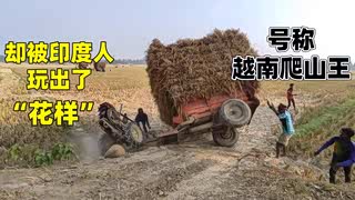越南爬山王,印度小伙驾驶手扶拖拉机上坡失控,这下可完犊子了