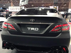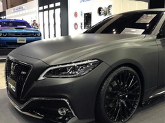 #全新丰田皇冠TRD版车展现身!全面黑化 搭载2.0T+8AT#目前的汽车市场上,似乎掀起了一股黑化涂装的潮流。尤其是在SUV和轿跑车型上,陆续推出了许多全黑化车身的改款车型。这种黑色涂装和组件的特殊款式,充满了神秘的色彩,主要面向于喜欢低调或者有个性化审美的用户。最近网上就出现了一组全新丰田皇冠TRD版的车展照片。这款全新的丰田皇冠TRD版,就采用了这样全黑化的涂装和组件。其前脸部分采用了硕大的倒梯形的轮廓设计,中网为熏黑的蜂窝状结构,并在右上角带有“TRD”的标识。其下边采用了飞翼式的镀铬饰条进行装饰,提升了外观的层次感。两侧的腰线十分平直,贯穿前后,一直连接到尾灯。尾部的延伸出去的小鸭尾,增加了其运动元素,双边四出的排气筒布局,体现了其性能车的特点。在动力搭配上,将会搭载2.0T发动机,传动系统上,将会匹配8AT。