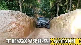 丰田霸道极限越野,挑战大水沟如履平地,后面却陷在河里