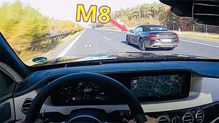 奔驰S挑战宝马M8 不限速高速极限比赛