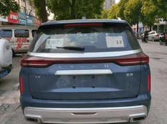 星途VX,前脸部分造型厚重,多边形的中网上方采用了三根粗壮的镀铬装饰条进行分隔,大灯中间还由一根更加粗壮的镀铬饰条进行连接,视觉冲击力非常强。头灯造型宽大,周边线条十分的流畅,透明灯罩内的灯组采用了分隔样式,周边还带有晶钻点缀,点亮后视觉效果非常突出。梯形进气口两侧采用了竖状的雾灯,周边线条很有层次感。前脸保险杠造型厚实,银色涂装显得极具质感,整体前脸看起来十分的霸气。