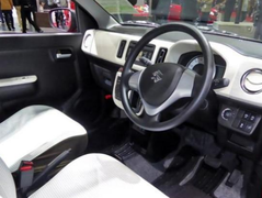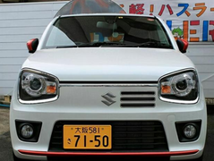 铃木奥拓,新车的车头处采用了全新的铃木家族式设计,新车的机盖上方十分的圆润,下方大面积的大灯组则是看起来非常呆萌,而且内部还有着圆形的光源与熏黑的配色设计,增加了车头的炫酷感,而且周围与中央都有着镀铬条包裹相连,而且铃木车标旁边有着三条平行的熏黑散热口设计,不对称的设计则是个性十足,下方有着大面积的梯形格栅,搭配下方贯穿式的红色饰条搭配,增加了运动感。