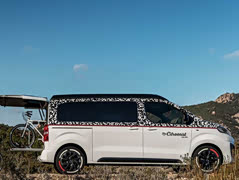 近日,雪铁龙官方发布SPACETOURER Citroënist概念车的官图,新车基于之前亮相的SPACETOURER 4X4 E概念车打造而来,并且对细节进行了微调。据悉,新车将在9月28日举办的法国勒布尔热休闲车展中首发。 外观上,新车采用MPV车型习惯采用的长脸设计,层次感较强。而新车的雾灯隐藏在前杠两侧的“大耳”区域,显得很“娇小”,反倒是上方的竖条日行灯增添了几分辨识度。 新概念车采用复杂的纯白和黑白图案元素,并由名为Martone的红色条纹将把车身分成上下两段,轮圈更是采用三种颜色,看上去十分拉风。 内饰方面,新概念车以简约为主,但配色融入了浅灰色、黑色和红色等元素,营造出比较活泼的氛围。车内对乘坐以及储物空间做了特殊的设计优化,像电视机、书桌、多媒体区等都合理分布。同时地板上的储存区还可存放自行车,车顶采用了弹出式设计,方便用户在户外活动时灵活拓展。 动力方面,新车沿用了SPACETOURER 4X4 E概念车的动力系统,将搭载一台2.0T柴油机,最大功率110kW(150PS),峰值扭矩为370Nm,匹配6挡手动变速箱,标配四驱系统。