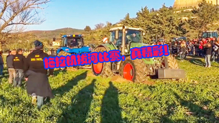 拖拉机拔河比赛,车轮原地打转,路面都被扒出个坑