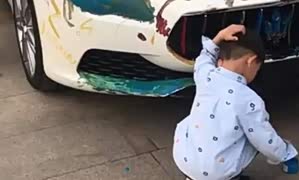 88万玛莎拉蒂在幼儿园门口被当画板,车主却一脸淡定站在旁边!