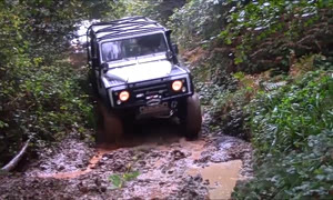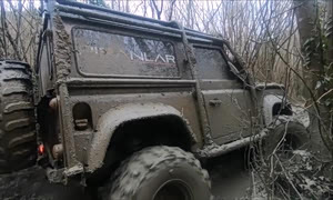 很少见的路虎卫士 和几辆吉普一起穿越雨林
