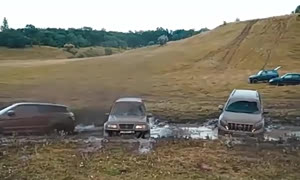 路虎极光对战丰田普拉多,谁能征服泥潭?一脚油门下去结果尴尬了