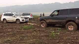 丰田LC100烂泥中救援哈弗H9,却没想到力气太大