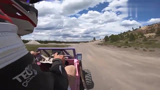 吉普车就是好,这么高台阶,轻而易举的就上去!玩具车也是不得了