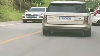 拐弯时遇到的路虎车,车牌号5个9,一看就知道非富即贵!