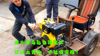 老外用马达自制汽车,打火太费劲,不过蛮实用!