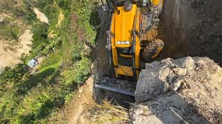 铲车给村里修山路,今天这段是下山,所以师傅开得很慢