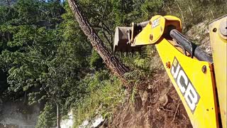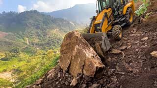 今天在山里修路,从山上挖出一块巨石,幸亏有挖掘机才能处理它