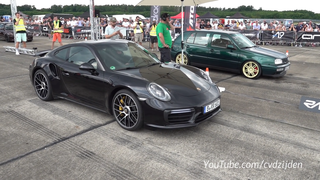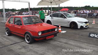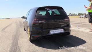 在封闭场地飞驰的大众高尔夫
