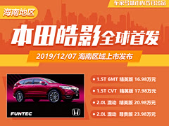 本田皓影全球首发16.98-23.98万元起售 海南区域已上市