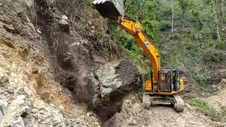 大石头滚下来好危险,村里修路基都是简单的,难的是今天这边山腰