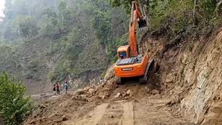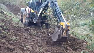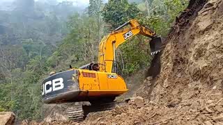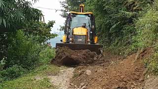 山里乡道施工,反铲装载机在拓宽路面,2头忙就是这点好能挖能推