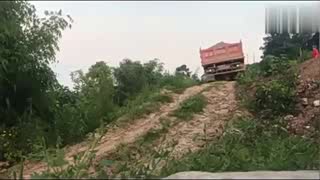行车记录:这是高手!货车老司机倒车下陡坡,这技术真的不服不行