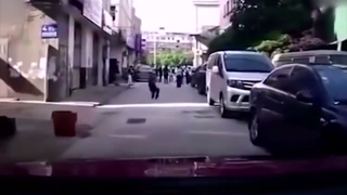 大妈,整条街的人都欠你一个奥斯卡!我车还没开过去你就躺下了