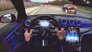 高清实拍2022款奔驰C级,夜晚亮起氛围灯开上路,太惊艳了